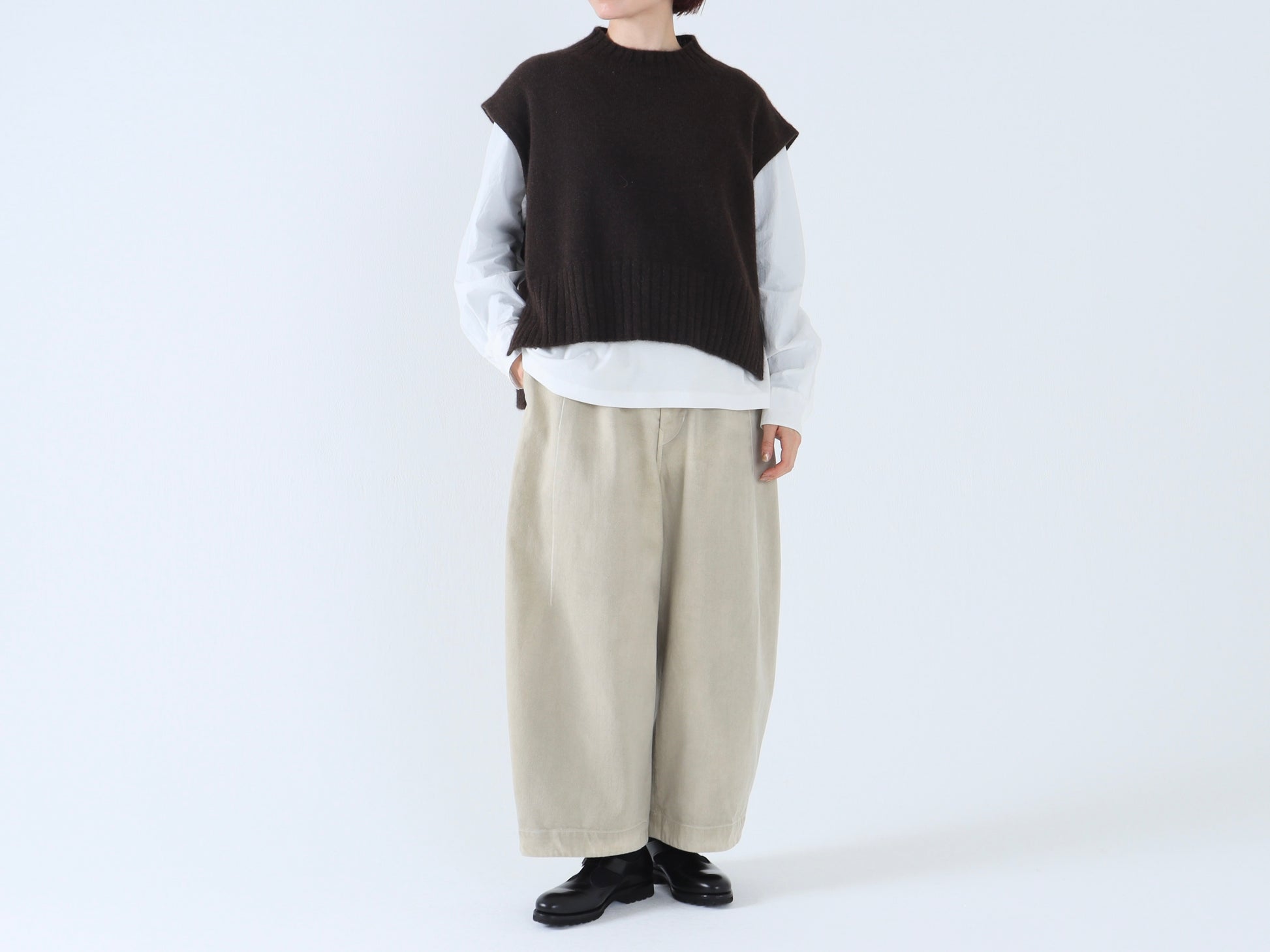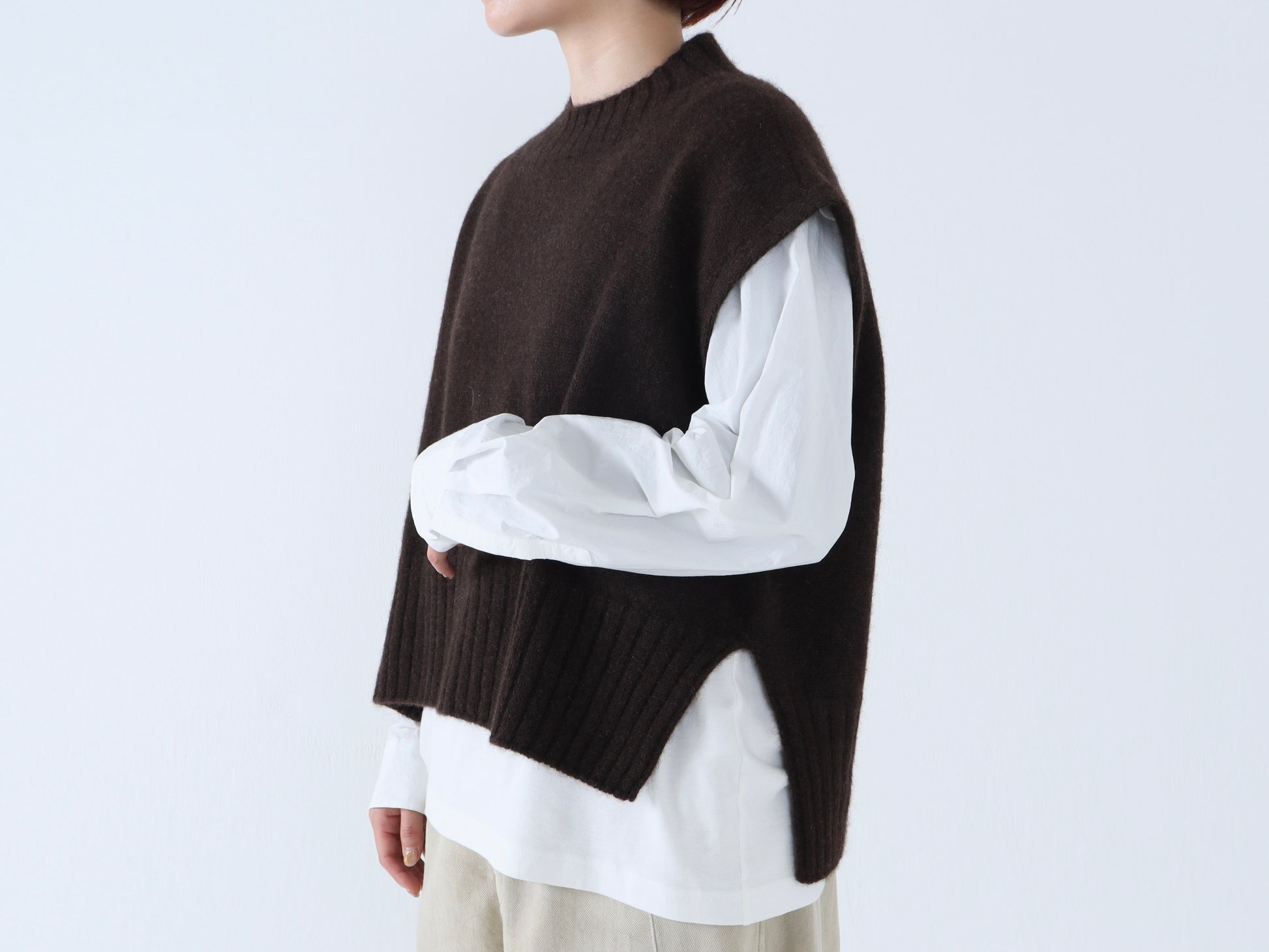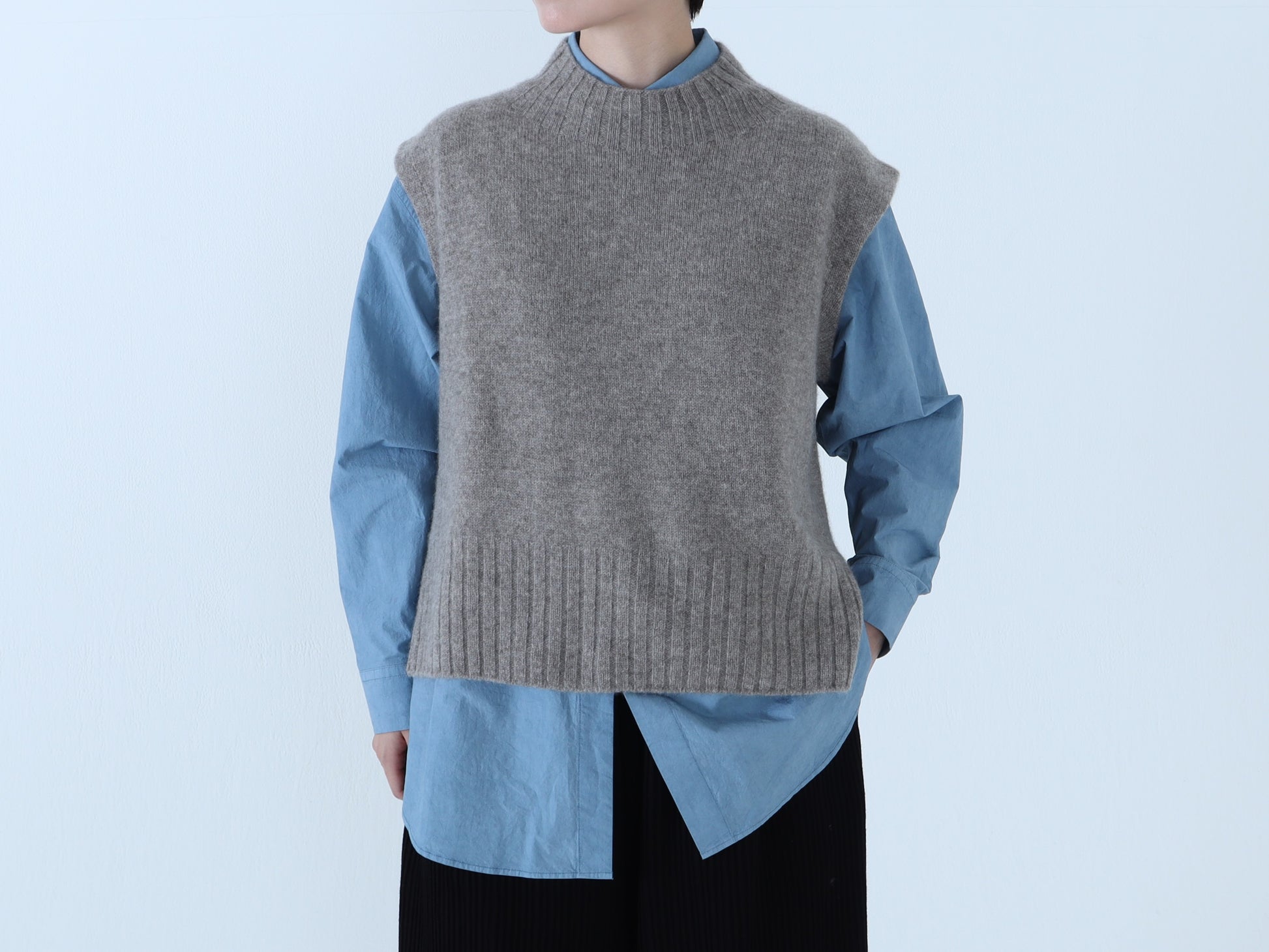毎年大人気のショート丈ワイドセーターから、袖を外したベストタイプが登場しました。